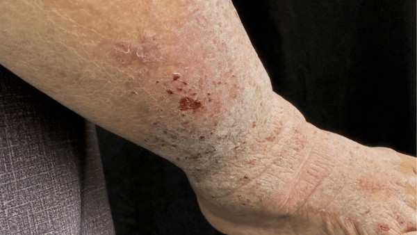 Stasis Dermatitis: Caused by poor circulation, leading to redness and swelling in the lower legs.